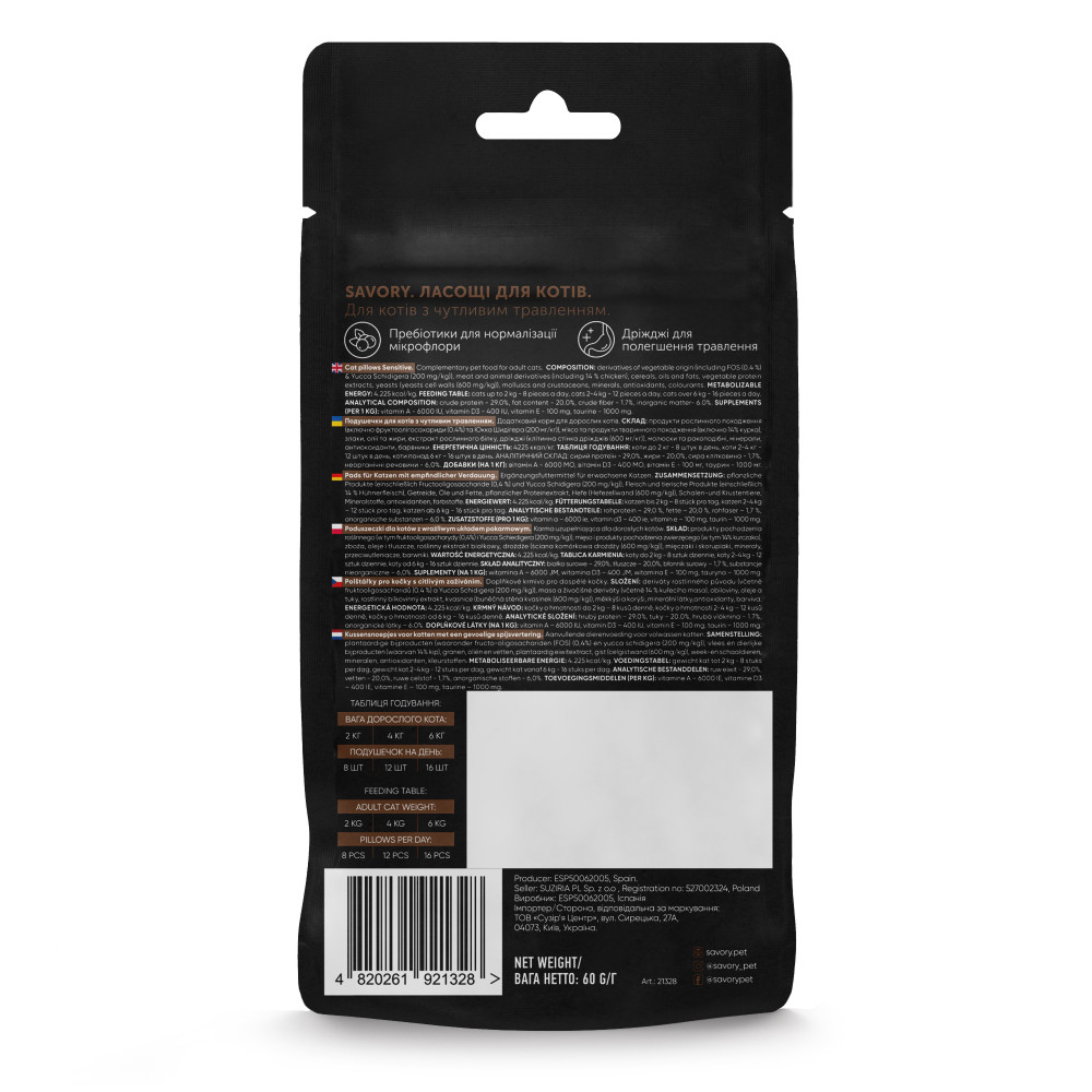 Рекомендації щодо годування: коти до 2 кг - 8 шт./день, коти 2-4 кг - 12 шт./день, коти 4-6 кг - 16 шт./день.