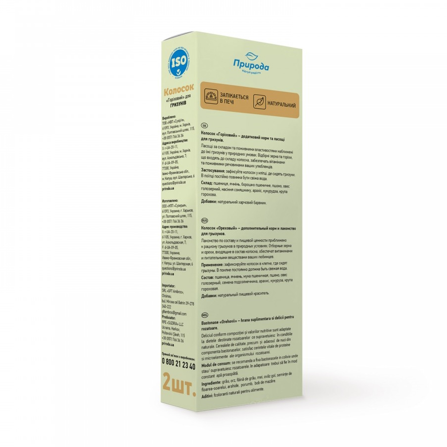 Оптимальний склад ласощів: різноманітні зернові культури, фрукти і овочі – забезпечує улюбленців рослинними протеїнами, вуглеводами, пектиновими речовинами. При вживанні ласощів травлення гризуна функціонує без порушень.